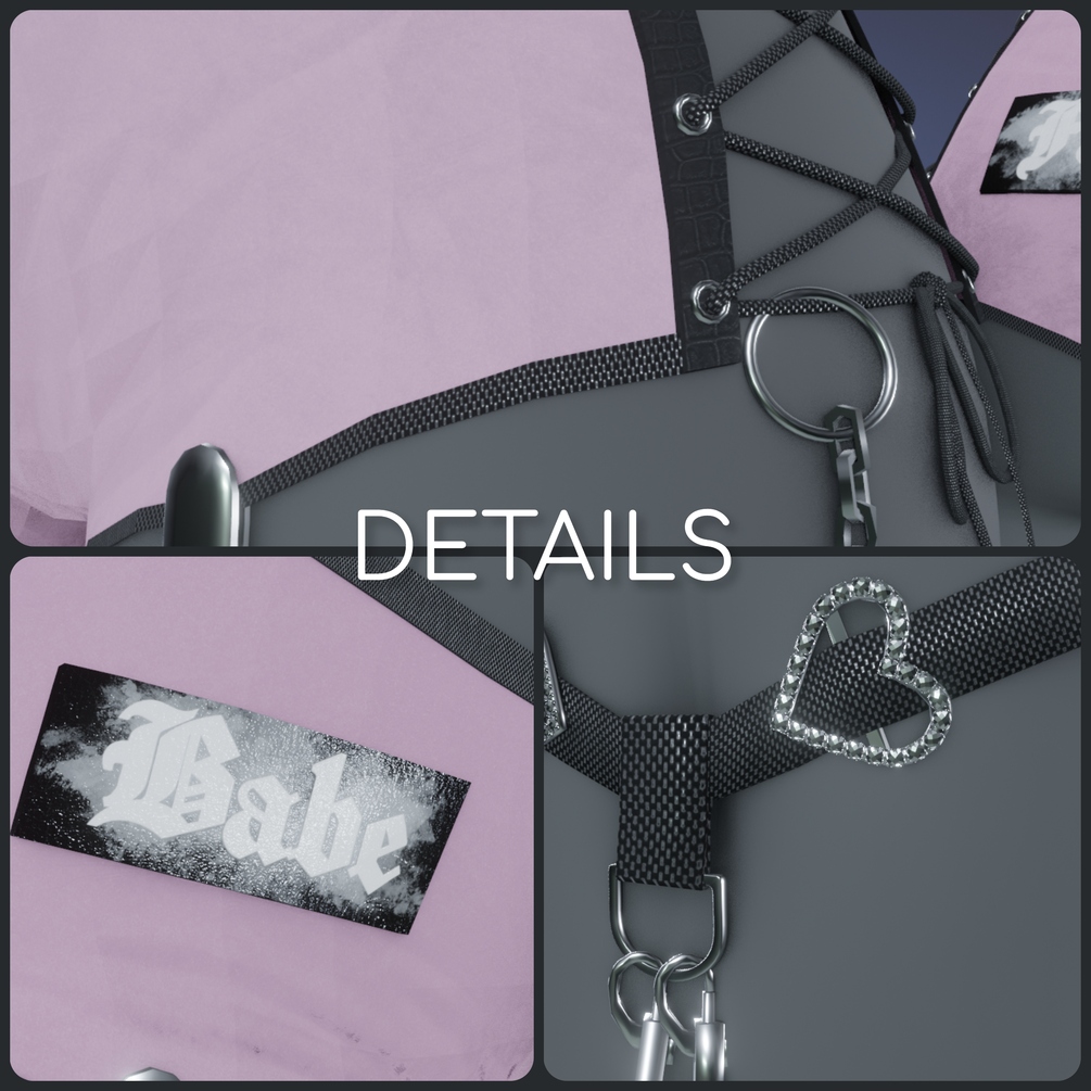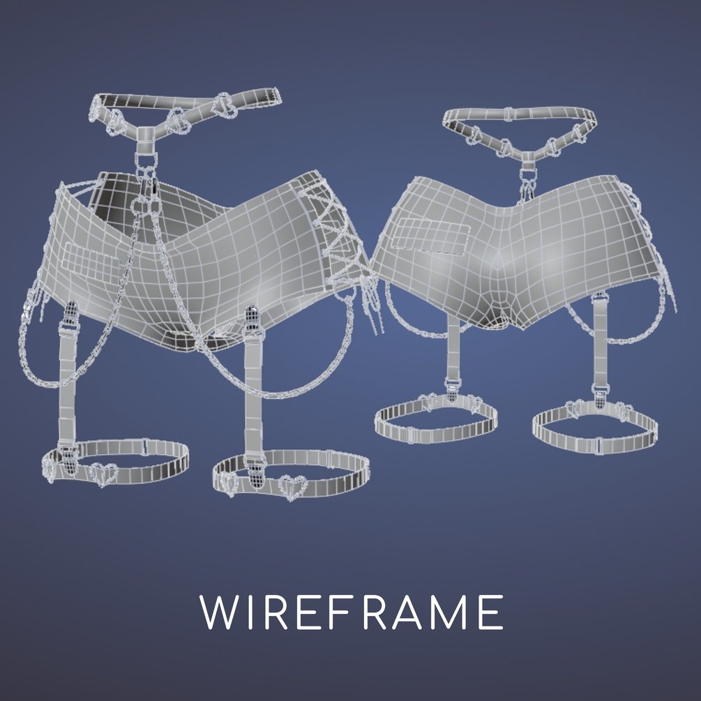 - Separated into 4 meshes. Chains, Belt, Garters, Shorts