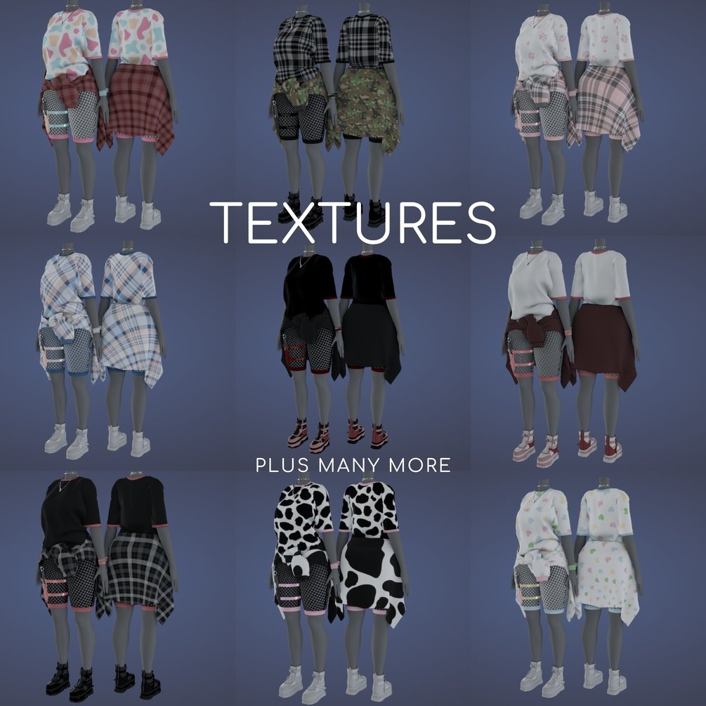 • Outfit - 20 textures, Shoes 4 textures, Flannel 17 textures.